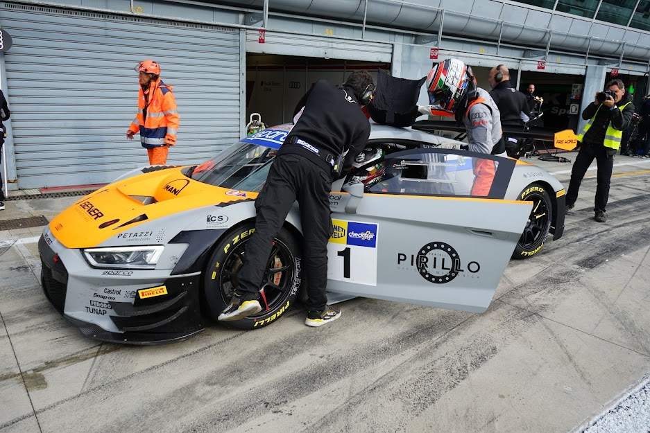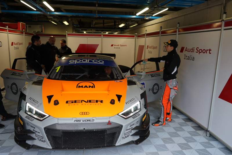 Monza (MB) - La prima corsa della stagione GT3 Sprint ha accolto Marco Butti e Simone Patrinicola con la pioggia nel pomeriggio e con una doccia fredda al mattino: non hanno purtroppo potuto disputare alcun giro per un problema a un cuscinetto dell'attuatore della frizione. Pertanto il comasco sulla pista di casa nella prima corsa coi quattro anelli ha dovuto partire in ventesima fila, quarantesimo assoluto. Non si è perso d'animo e malgrado i primi due giri percorsi dietro safety car ha attaccato subito le molte vetture della classe GT Cup che lo precedevano e al quinto passaggio della corsa riagganciava già la peggio piazzata delle auto di pari categoria che si trovava davanti, superando una Lamborghini Huracan diciottesima assoluta e in quel momento terza della classe GT3 Am, nella quale sono collocati esordienti e gentlemen. Poi insisteva e superate altre GT Cup all'ottavo giro si inseriva al secondo posto di classe scavalcando anche la rivale diretta Honda NSX Evo di Magnoni/Lippi. Al momento dell'apertura della corsia box per il cambio pilota, Butti si trovava ancora secondo di classe e diciottesimo assoluto, sia pure a quasi un minuto e mezzo dal leader, in quel momento la Huracan di Di Folco, mentre la gara a fine pomeriggio sarebbe finita nelle mani della nuovissima BMW M4 di Glock/Klingmann. La seconda parte della corsa, con pioggia meno insistente ma ancora svoltasi con gomme da bagnato, vedeva Patrinicola rientrare in pista dopo un cambio pilota in cui il duo esordiente non si dimostrava ancora a proprio agio con la procedura. Nonostante questo il siciliano iniziava il suo primo turno sull'Audi con un distacco dal leader della GT3 Am, la Ferrari 488 di Alessandro Cozzi, equivalente all'incirca al rettilineo di partenza della pista brianzola. Il pilota ennese riusciva a tratti a limare il divario, ma i circa 12" da recuperare cambiavano con un tipico effetto elastico tra l'Audi e la Ferrari, che alla fine andava a vincere lasciando ai giovani della R8 LMS il secondo posto di categoria e un sedicesimo assoluto. Purtroppo domani Patrinicola dovrà a sua volta attendere il semaforo verde dall'ultima fila, e anche in questo caso l'unica tattica possibile per il duo Audi Sport Italia non potrà essere che quella di cercare una rimonta.