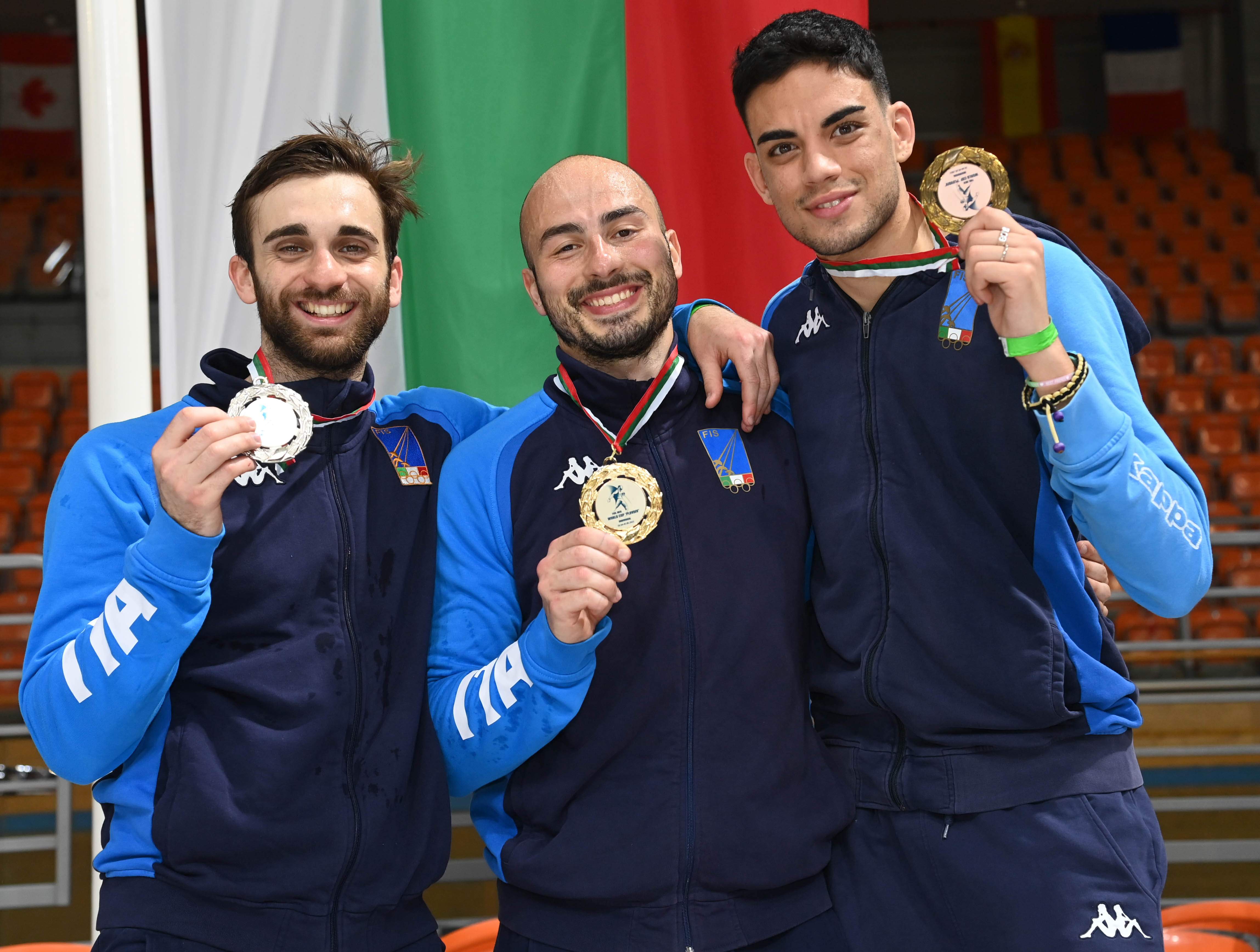 PLOVDIV - Delirio azzurro a Plovdiv. È tripletta italiana nella tappa di Coppa del Mondo di fioretto maschile: Alessio Foconi vince la prova bulgara del circuito iridato aggiudicandosi il derby con l’amico di sempre Daniele Garozzo, mentre Tommaso Marini sale sul terzo gradino del podio. Un autentico trionfo per i fiorettisti guidati dal Commissario tecnico Stefano Cerioni, dominatori assoluti di una gara in cui soltanto la presenza al terzo posto – pari merito con Marini – dell’ungherese Gergo Szemes non dà la sensazione sbagliata di trovarsi in un “open” nazionale. Italia-Italia-Italia. Il tris d’assi calato sulle pedane di Plovdiv riporta lassù Alessio Foconi, il ternano dell’Aeronautica Militare che in finale l’ha spuntata per 15-11 su Dani Garozzo, anche l’acese delle Fiamme Gialle a sua volta protagonista di una gara eccezionale che l’aveva visto, in semifinale, affrontare e vincere (per 15-6) un’altra sfida tutta azzurra, quella che aveva dirottato in terza piazza Tommaso Marini, l’anconetano delle Fiamme Oro che si conferma sul podio due settimane dopo il successo di Belgrado Un’apoteosi italiana, completata pure dall’ottavo posto di Guillaume Bianchi, rimasto ai piedi del podio solo per la sconfitta 15-13 nel derby contro Marini. Spettacolari le prestazioni degli azzurri. Alessio Foconi ha cominciato superando gli ucraini Yunes (15-9) e Pogrebniak (15-6), prima di guadagnare i “top 8” battendo 14-9 lo statunitense Massialas, poi la certezza del podio grazie al 15-11 rifilato all’altro americano Meinhardt e il successo per 15-8 sul magiaro Szemes mentre dall’altra parte del tabellone si consumavano i derby italiani. Garozzo ha sofferto nel primo match di giornata, chiuso 14-13 contro il polacco Rzadkowski, poi il 15-7 al britannico Davis, il 15-12 al giapponese Suzumura e i quarti di finale vinti 15-8 con l’egiziano Hamza. In semifinale il neo “Dottore” di Acireale, trasferito a Frascati, ha trovato il giovane compagno Tommy Marini. Per il poliziotto marchigiano, che si allena a Jesi, solo sette stoccate subite nei primi due assalti (15-3 all’austriaco Poscharnig e 15-4 al portacolori di Hong Kong, Choi), poi un secco 15-8 al campione olimpico Cheung e la sfida tutta italiana vinta contro un ottimo Guillaume Bianchi per 15-13. Di derby in derby, dunque. Garozzo in semifinale si è imposto 15-6 su Marini e così in finale s’è ripetuta una “sfida infinita”. Amici, compagni di squadra e di stanza, però pure rivali in pedana: Foconi e Garozzo hanno dato vita a un match emozionante, vinto dall’aviere di Terni per 15-11, e sancito dallo splendido abbraccio finale tra i due dopo l’ultima stoccata.